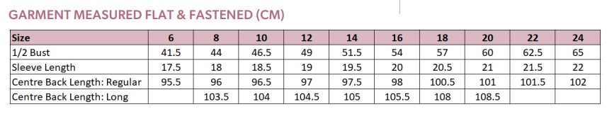 Centre back length at size 12R = 97cm